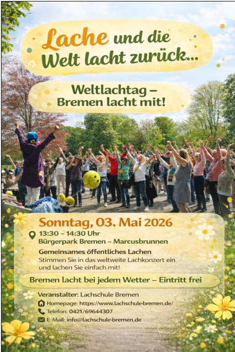 13.30 bis 14.30 Uhr Weltlachtag – und Bremen lacht mit!
